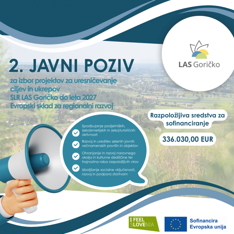 JAVNI POZIV za izbor projektov za uresničevanje ciljev in ukrepov Strategije lokalnega razvoja LAS Goričko do leta 2027 Evropski sklad za regionalni razvoj